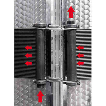 Tra gli accessori per serbatoio in acciaio trovi inoltre un vasto assortimento di piastre refrigeranti per il condizionamento ad immersione e il controllo della temperatura di fermentazione da collegare ad impianti frigoriferi. Le piastre inox sono stampate a doppio canale e vanno fissate internamente in posizione verticale, sono complete di filetti da 1/2" per entrata e uscita del liquido refrigerante. E se vuoi condizionare i serbatoi in acciaio anche all’esterno non mancano accessori come le polifasce, particolarmente ricercate dai produttori di birra.