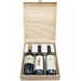 Cassetta in legno ideale come confezione regalo. Può contenere 3 bottiglie da 750 ml. Il coperchio è corredato di una chiusura e due cerniere dorate. All'interno della scatola è presente un divisore in cartone fustellato per evitare che le bottiglie urtino tra di loro.