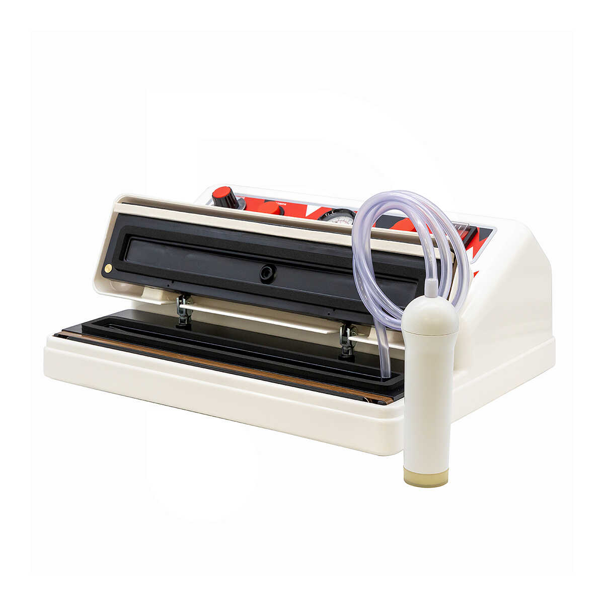 La macchina per sottovuoto professionale Jolly è uno strumento adibito all’estrazione completa dell’aria per il confezionamento e la conservazione prolungata degli alimenti, permettendo di mantenere inalterati il sapore, il profumo, il colore e le differenti proprietà nutrizionali. Predisposta per un funzionamento manuale che consente di allungare la vita del motore con una potenza di 400 Watt, la macchina per sottovuoto assicura un’ottima resistenza ai carichi di lavoro elevati e offre una buona durata del prodotto nel tempo. La pompa di aspirazione dispone di un raccordo con presa d’aria che permette di effettuare il sottovuoto anche in contenitori come i barattoli di vetro, mentre la barra saldante di 33 centimetri garantisce una perfetta sigillazione dei più diffusi formati di buste. La macchina per sottovuoto Jolly offre un tempo di lavoro regolabile grazie al timer da impostare a seconda della grandezza delle buste e un vuotometro analogico che mediante una lancetta indica all’operatore l’attimo ideale per la saldatura. La confezionatrice alimentare Jolly ha una struttura in plastica che occupa un ingombro di 370x300 mm, 160 mm di altezza e un peso di 5 Kg.