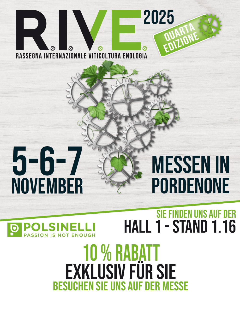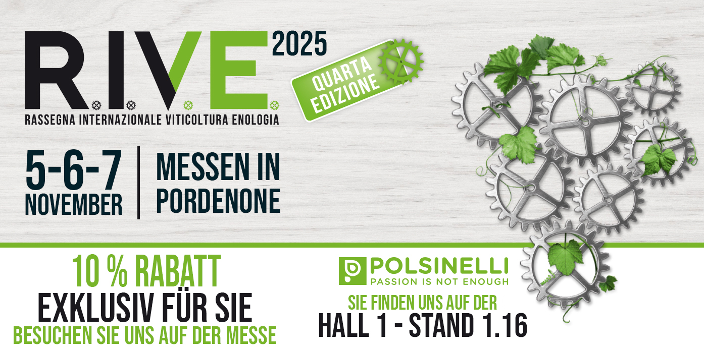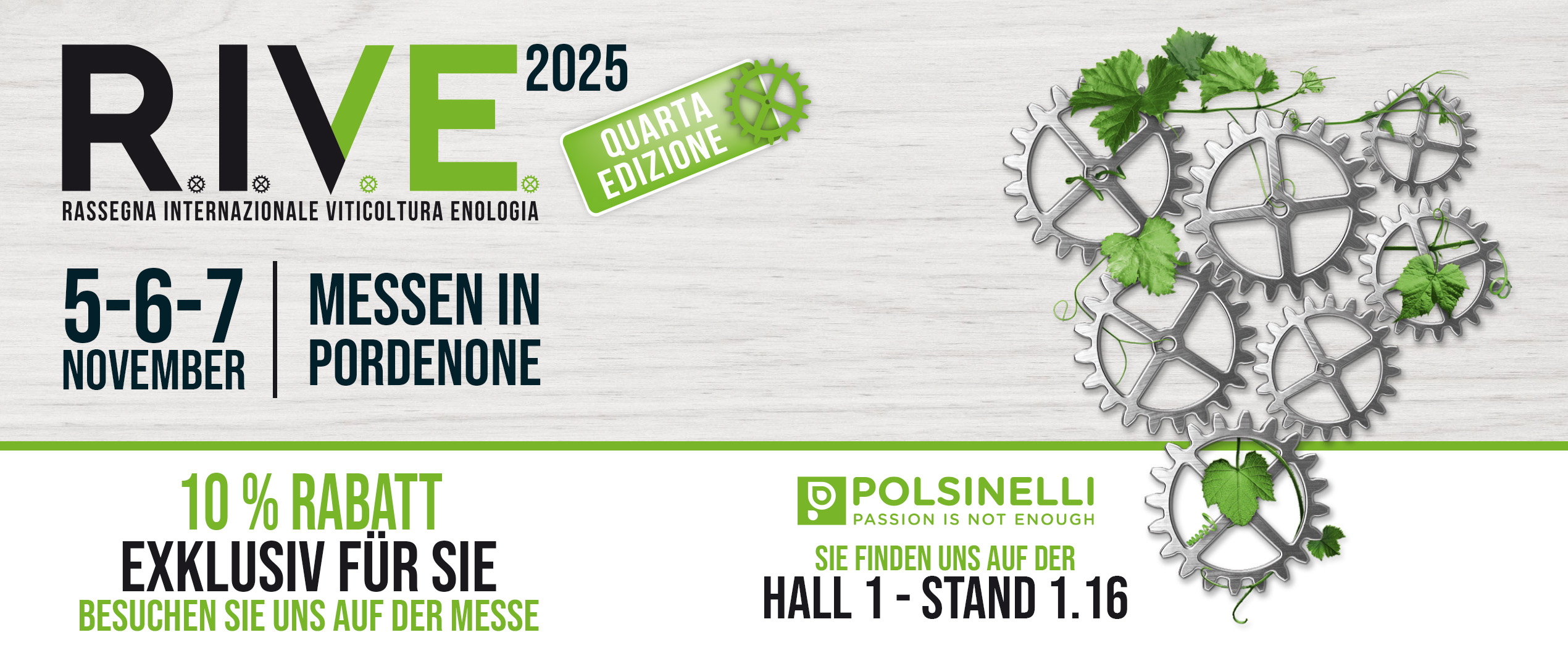 Die Firma Polsinelli wurde 1958 gegründet und begann mit der Herstellung von Pressen und Abbeermaschinen. Mit der Entwicklung des Marktes erweiterte das Unternehmen seine Produktpalette um Edelstahlbehälter und kleine Filtrations-und Abfüllmaschinen. Seit mehr als 20 Jahren ist die Firma auf die Planung und den Bau von Ausrüstungen und Anlagen für kleine und mittelgroße Weingüter spezialisiert und liefert alle Arten von önologischen Produkten, die für den gesamten Produktionsprozess bis hin zur Abfüllung erforderlich sind.