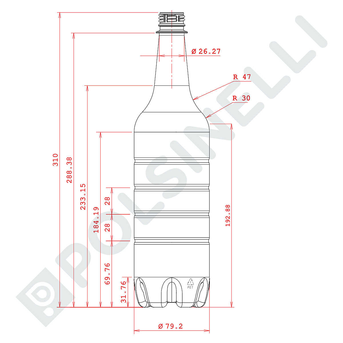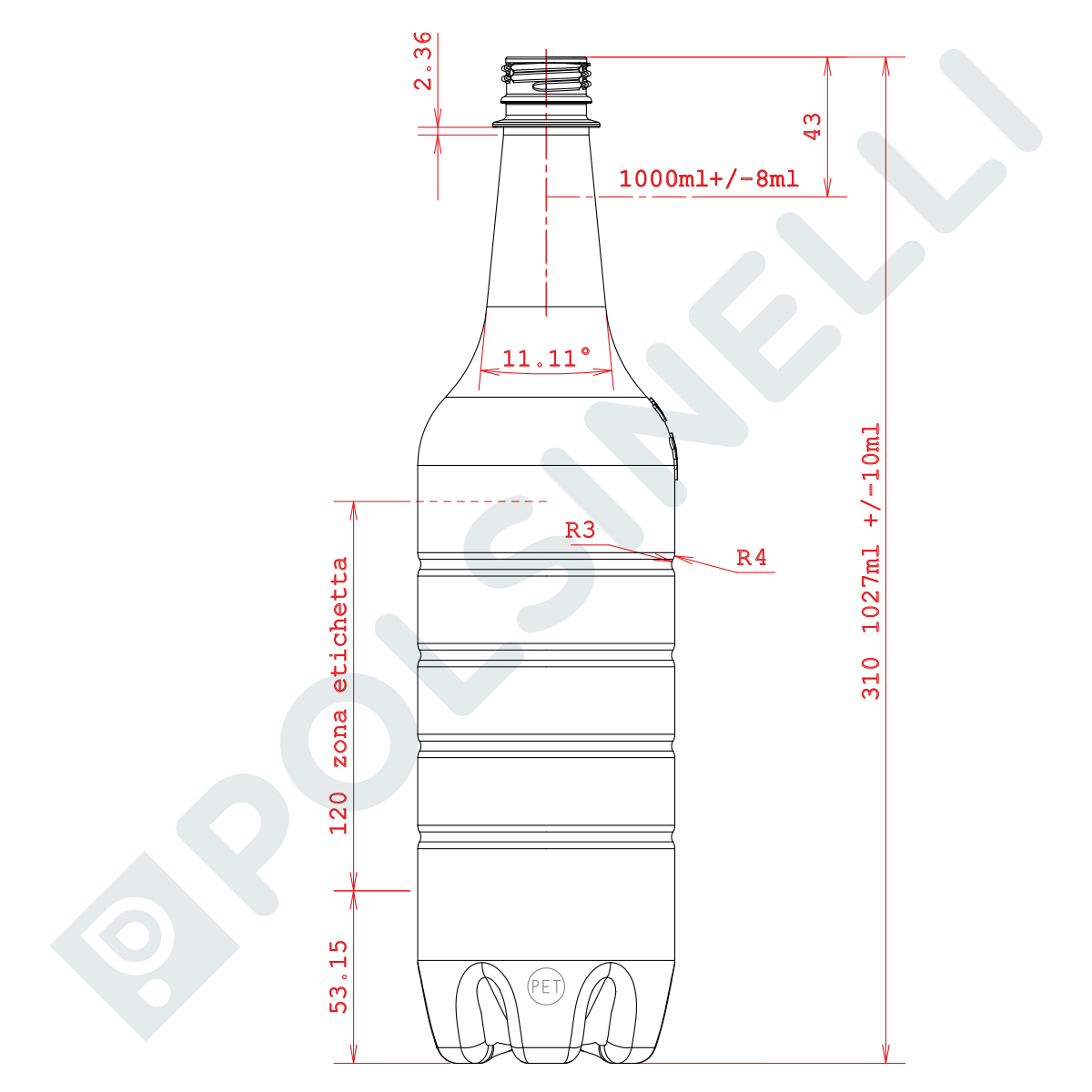 Flasche in PET Bordolese Plus Lebensmittelecht 1 L