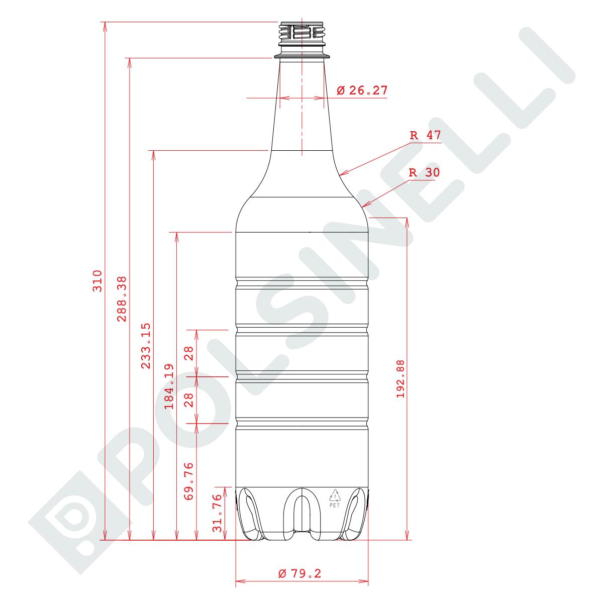 1 L PET-Flasche Bordolese Plus mit Verschluss (195 St)