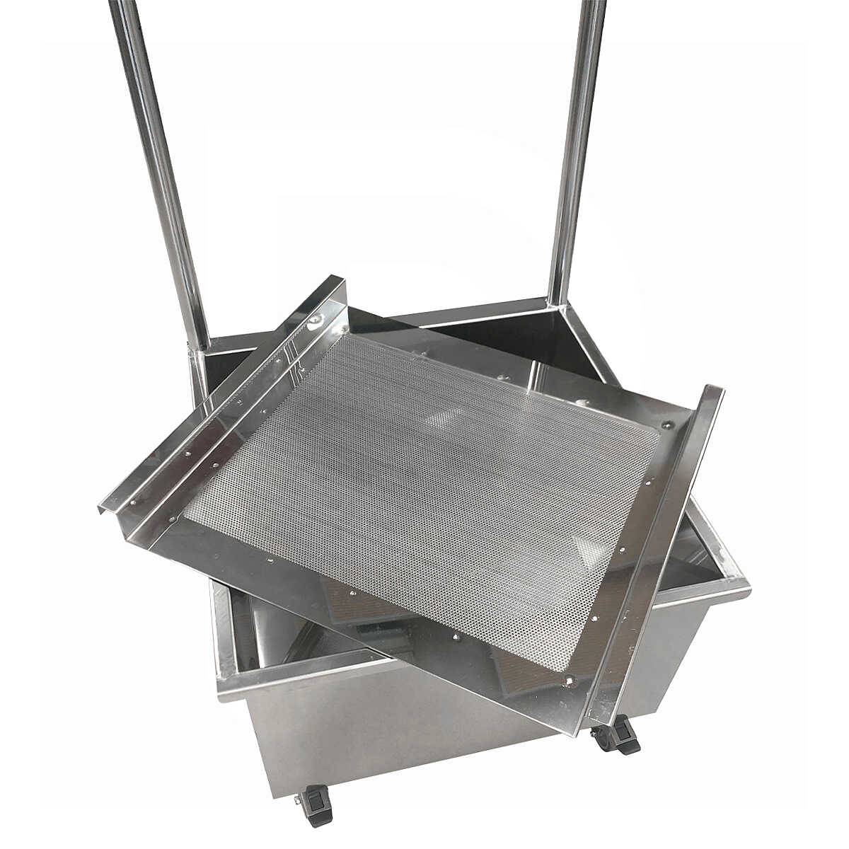 Mit der Abstichfilter aus Edelstahl können Sie Wein und Traubenkerne während des Abfüllvorgangs leicht trennen. Sie ist komplett aus Edelstahl AISI 304 gefertigt und besteht aus einem abnehmbaren Filtergitter, einem 1" M-Kugelventil aus Edelstahl AISI 304, 4 Rädern, von denen 2 mit Bremsen ausgestattet sind, und aus einem Edelstahl Griff für einfaches Tragen.