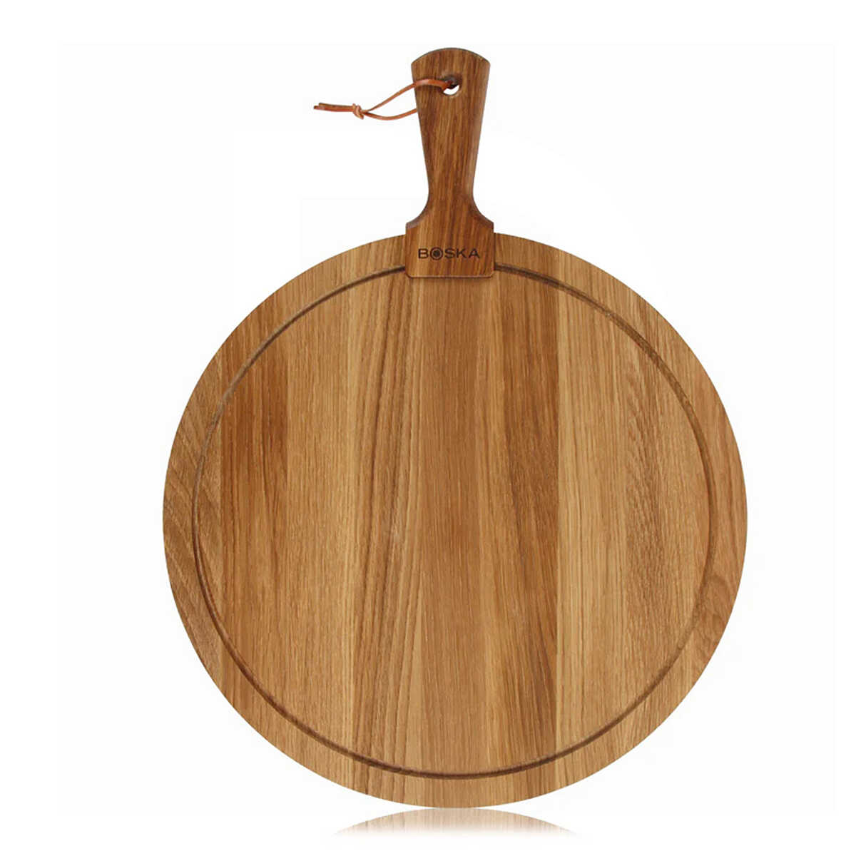 Mit seinem Durchmesser von 40 cm bietet es ausreichend Platz zum Servieren von Käse, Tapas, Aufschnitt und anderen Spezialitäten. Der stabile Griff und die Lederschnur ermöglichen es, das Brett bei Nichtgebrauch einfach aufzuhängen und machen es gleichzeitig zu einem stilvollen Dekorationselement für die Küche.