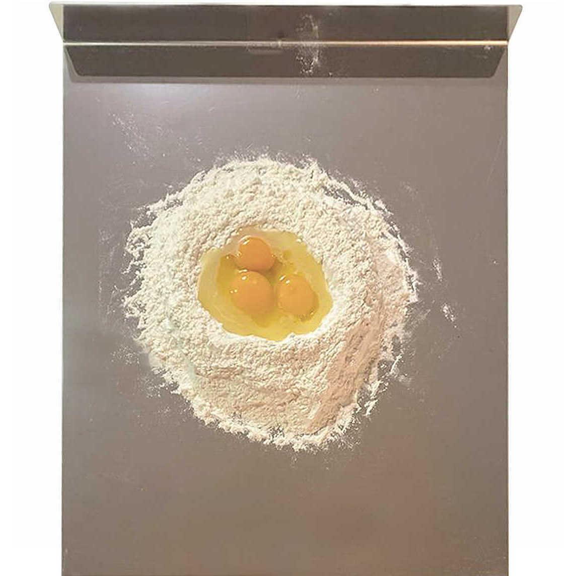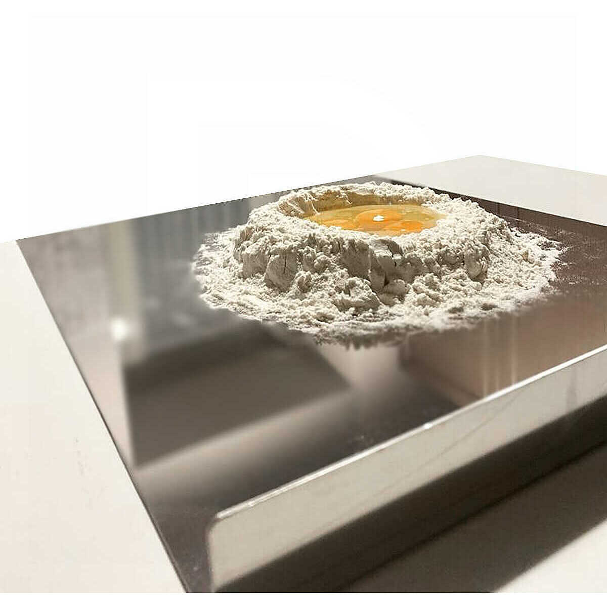 Das Backbrett ist hochglanzpoliert und antihaftbeschichtet, so dass der Teig nicht an der Oberfläche kleben bleibt, und der 40 mm hohe Rand verhindert, dass die Speisen auf den Boden fallen.