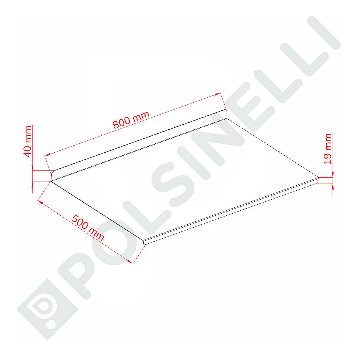 Brett aus Edelstahl AISI 304 mit Steigrohr - 800x500 mm