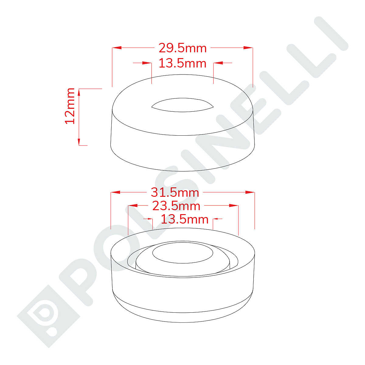 - Ø obere innere Durchmesser mm 13,5 - Ø obere aussene Durchmesser mm 29,5