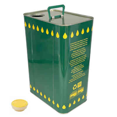 Behälter, lebensmittelecht, für Olivenöl und Olivenöl extra vergine, ausgestattet mit Transporthenkel.