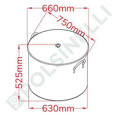| Abmessungen mit Halo Filter: Ø = Verstärkte Deckel Ø mm 655 h = Innere Stangenhöhe mm 493 P = Abmessungen des Schaufels mm 240 |
