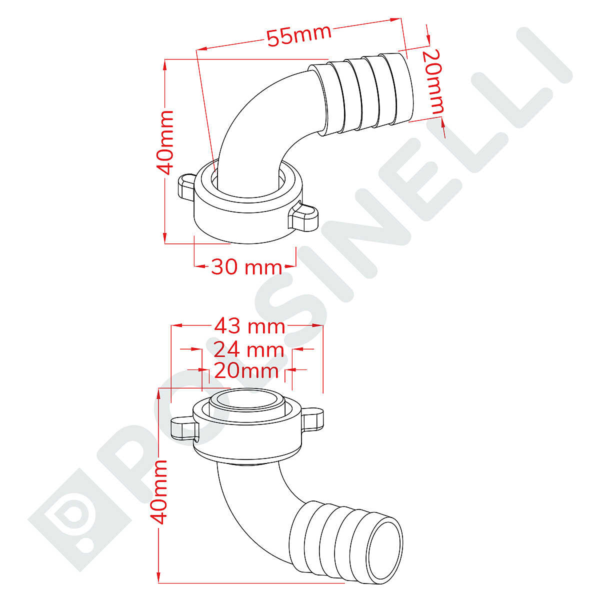 NOVAX 20 Kit mit Gebogener Schlauchtülle und Überwurfmutter