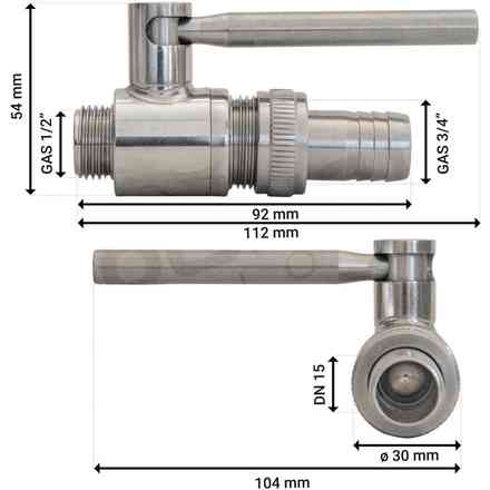 Ventile Edelstahl mit Kugel 1" M x 3/4" M DN20