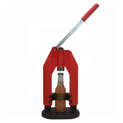 Die manuelle Mini-Verschließmaschine mit Hebel ist das ideale Werkzeug, um eine hervorragende Abdichtung von Flaschen mit Kork- und glatten synthetischen Stopfen zu gewährleisten, sodass der Inhalt optimal konserviert wird, ohne seine organoleptischen Eigenschaften zu beeinträchtigen. Ideal für Verpackungs- und Abfüllarbeiten in Hobbyproduktionen oder kleinen Betrieben verfügt die manuelle Verschließmaschine über eine stabile Stütze aus einem Dreibein, das während der Arbeit für hohe Stabilität sorgt. Im oberen Bereich ist sie mit einem Hebelgriff ausgestattet, der einen ergonomischen Halt für ein schnelles und müheloses Verschließen der Flaschen bietet. Die Funktionsweise sieht vor, dass die zu verschließende Flasche auf die erhöhte Basis gestellt und anschließend der Stopfen in den dafür vorgesehenen Bereich eingeführt wird, der durch Hebeldruck die Flasche hermetisch verschließt.