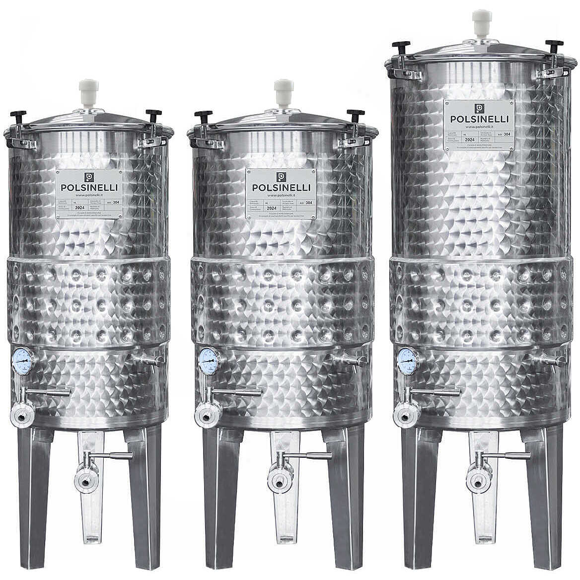 The 200 L 10° conical tank, designed and manufactured by Polsinelli in its own facilities, is a professional solution specifically developed for winemaking, suitable for microvinification, storage, and fermentation of products such as cider, mead, perry, and more. The integrated cooling system allows for precise temperature control, enabling optimal management based on specific needs.