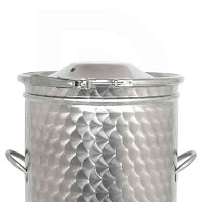 The 200 L conical tank features a 250 mm high external cooling jacket, also known as a pocket, complete with Ø 1" GAS fittings for the inlet and outlet of a water-glycol solution from a chiller. This ensures controlled fermentations and secure storage. The analog thermometer with a stainless steel well allows for continuous monitoring of the internal temperature.