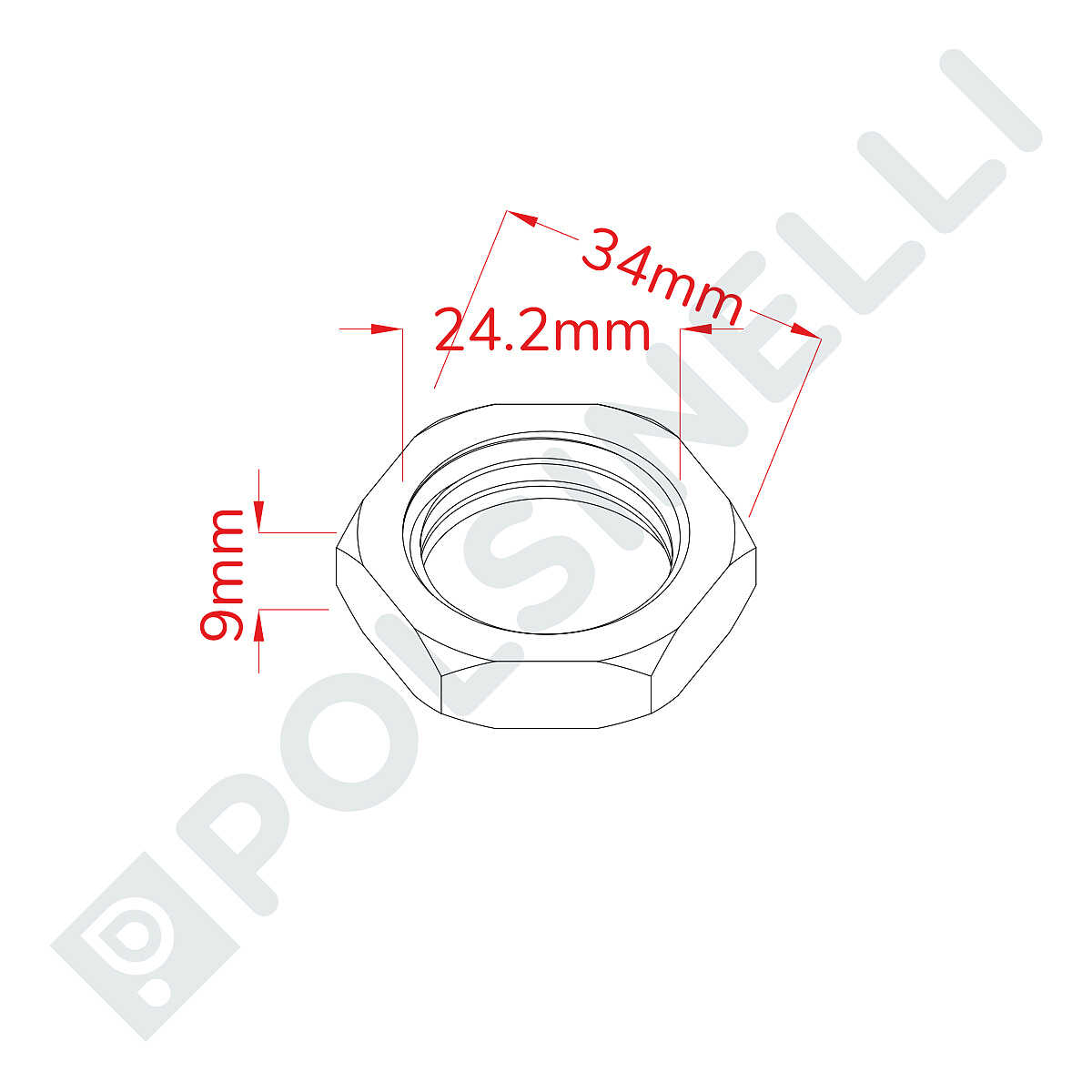 3/4" hexagonal stainless steel locknut