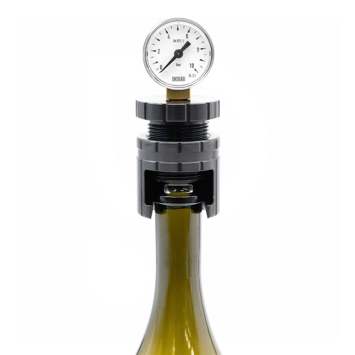 The 26 mm universal aluminum aphrometer is an indispensable instrument for monitoring the final pressure in bottles and thus the carbon dioxide content of sparkling wines and carbonated drinks in general.