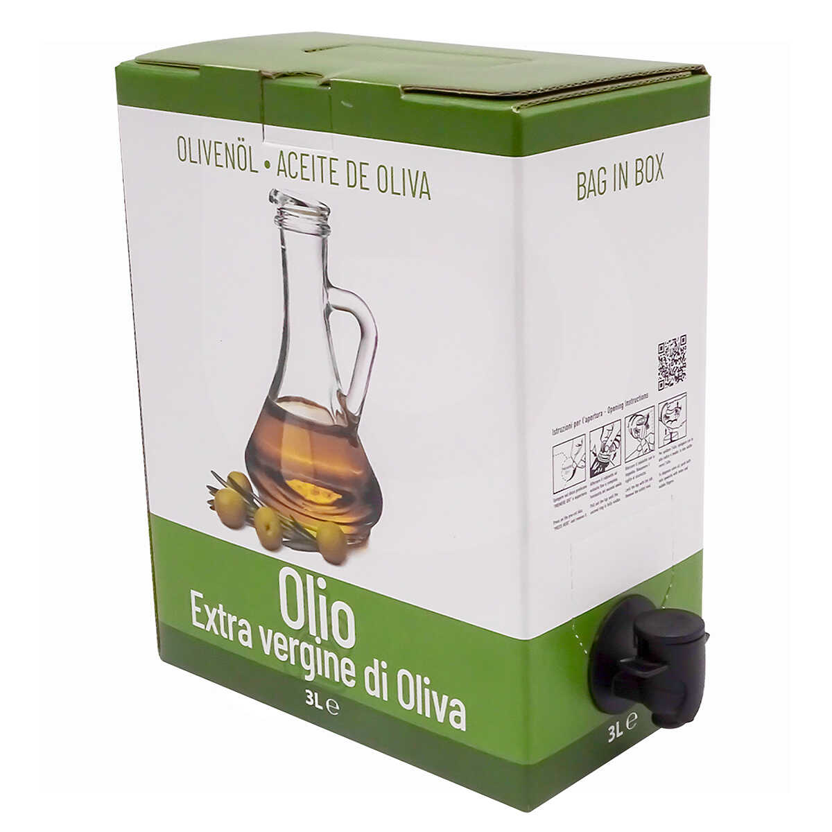 Modern, efficient and designed to meet the needs of producers, retailers and customers, the 3-litre Bag in Box OIL it is the right solution for containing olive oil and other edible oils.. Particularly suitable for your olive oil, the Bag in Box consists of an outer recyclable cardboard container and an inner silver pouch where the liquid is stored. The latter is designed to optimally protect the contents from external agents while preserving the quality of the oil over time.