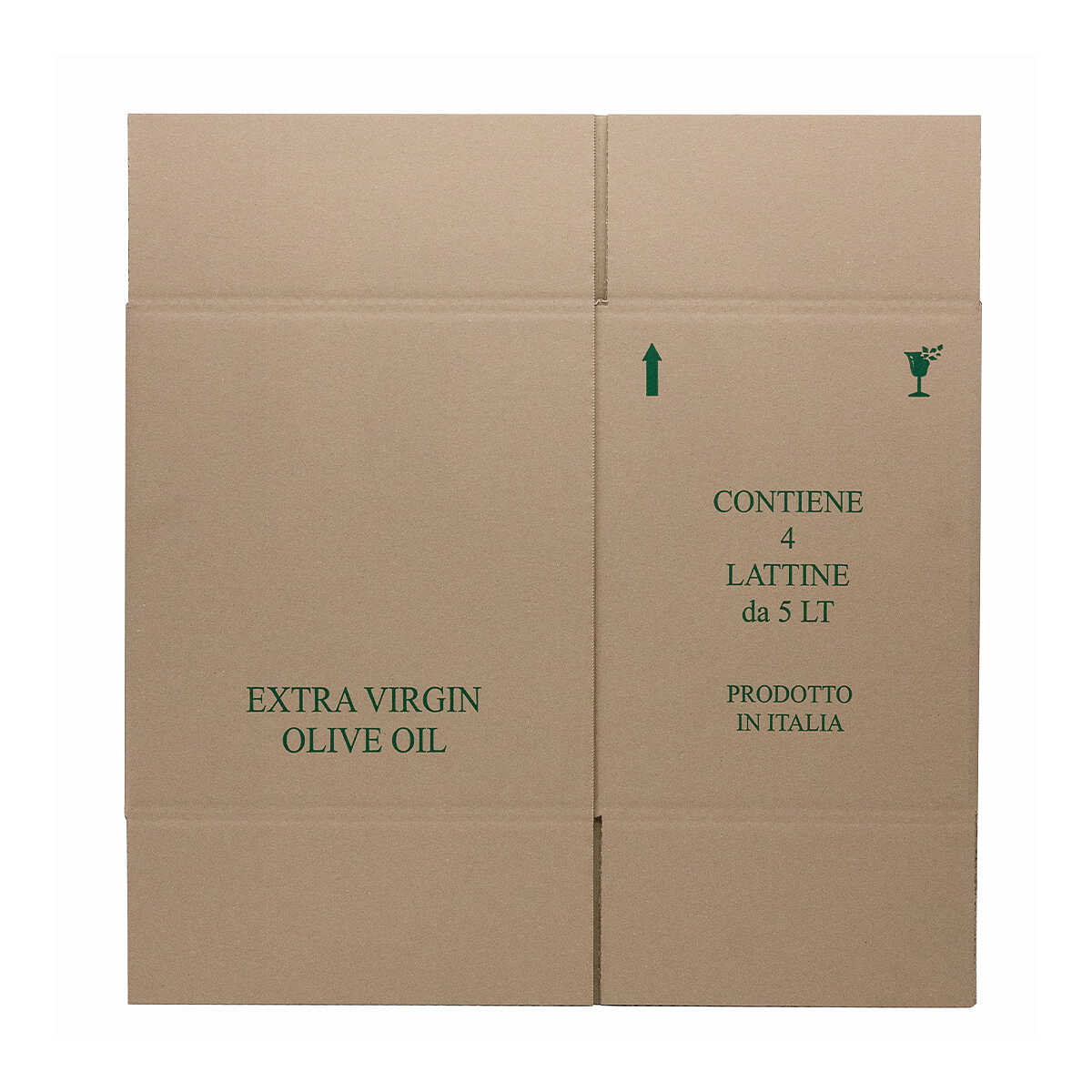 Sturdy box made of corrugated cardboard for packaging 4 5-litre olive oil tins.