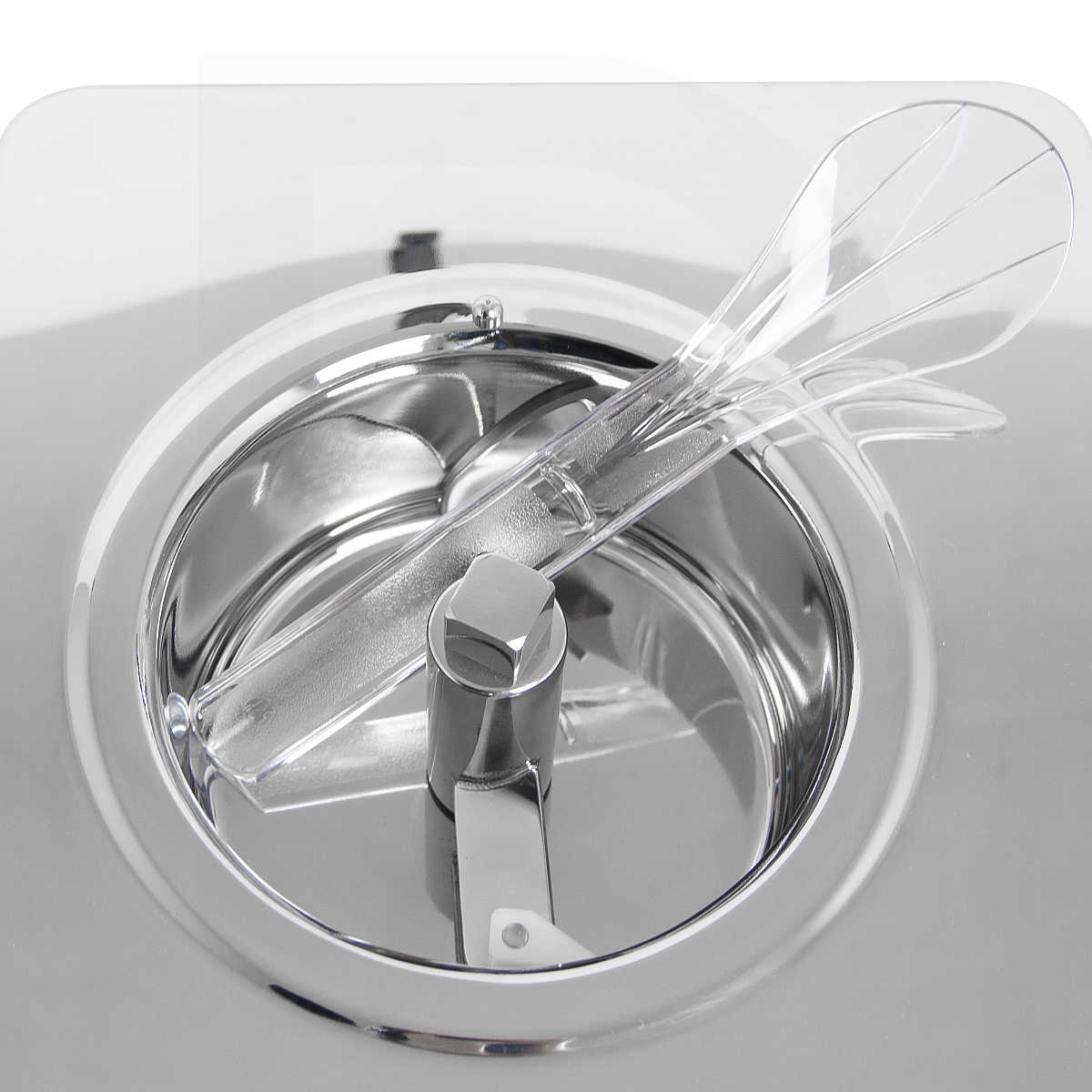 - Transparent lid with safety feature: the spatula stops automatically when the lid is removed.