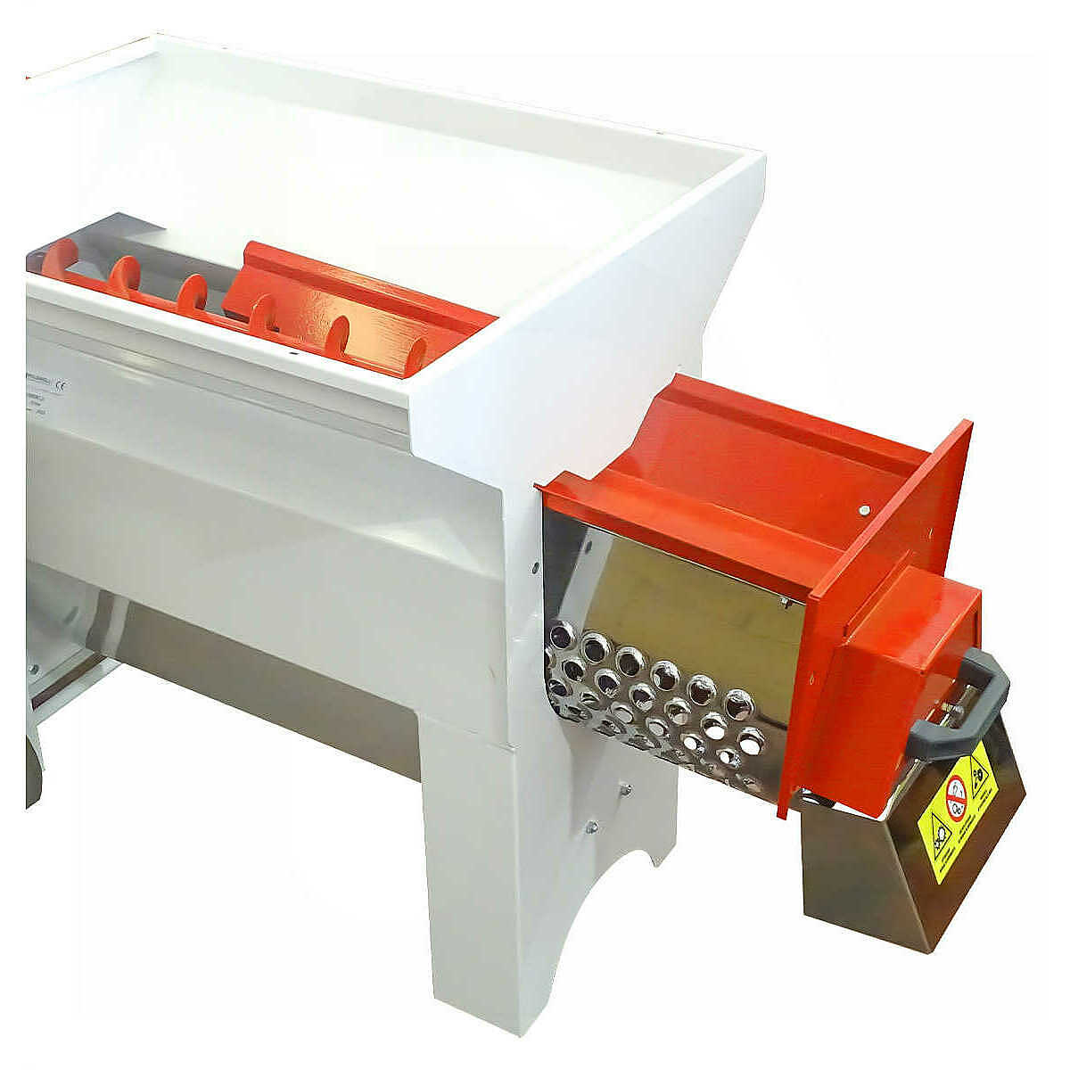 This product is resistant to continuous use over time, thanks to its sturdy sheet metal frame and removable stainless steel grid, immune to humidity and water. Equipped with a large hopper measuring 640 x 1000 mm, with an auger feed screw, the Fibreno 30 pumped crusher-destemmer is easy to clean after use. In fact, its central section can be removed by unscrewing the special knobs and extracting the piece with the handle so that both the pump can be washed from the inside and the stainless steel basket itself.