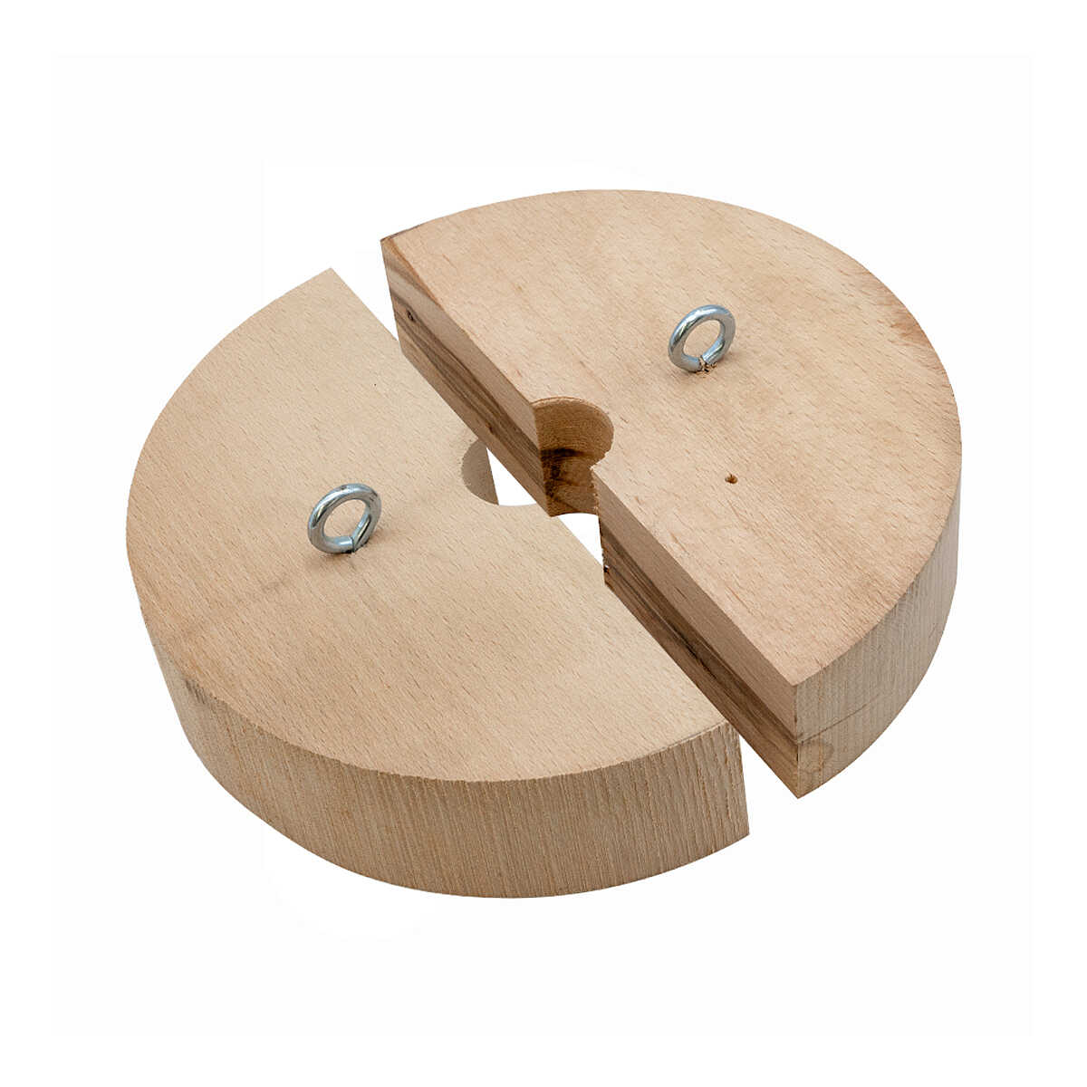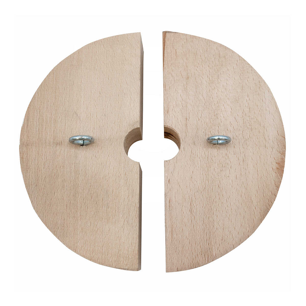 A pair of semi-circles in evaporated beech wood for presses with an internal cage diameter of 15 cm.