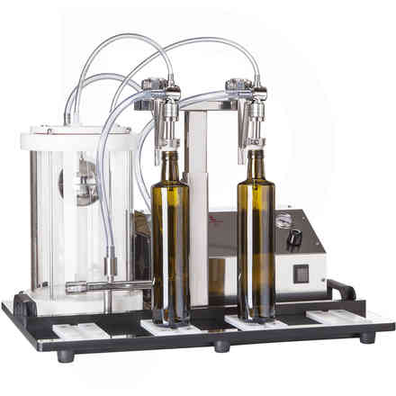 The 2-nozzle stainless steel kit is particularly suitable for filling non-alcoholic liquid products, alcoholic products up to 20% and with alcohol higher than 20% (alcohol higher than 20% must be used with the ENOLMASTER PYREX filling machine) or high temperature products in small size bottles.