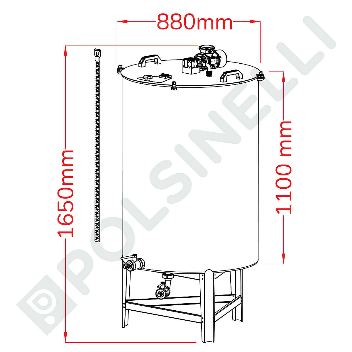 The 500-litre priming vat is an indispensable tool in the carbonation process, the first step in brewing, during which carbon dioxide is added to give the drink a fizz. The tank measures ø 78 cm while the overall height of the vat and stand is 165 cm. The 500 L stainless steel priming vat is equipped with a mechanical stirrer: the paddles work at a calibrated speed for perfect mixing of the product with the sugars added for carbonation. The purpose of perfect mixing is to minimise oxygenation and the likelihood of "gushing", i.e. beer leaking from the bottle due to the creation of uneven layers of sugar. The basic equipment of the 500 L priming vat includes a food-grade stainless steel birrometer, an essential tool for monitoring the state and quantity of the liquid precisely during fermentation. The tank is placed on a stainless steel support, and has a drain with a 25 DIN valve. There is also a wash ball, ideal for sanitising the product.