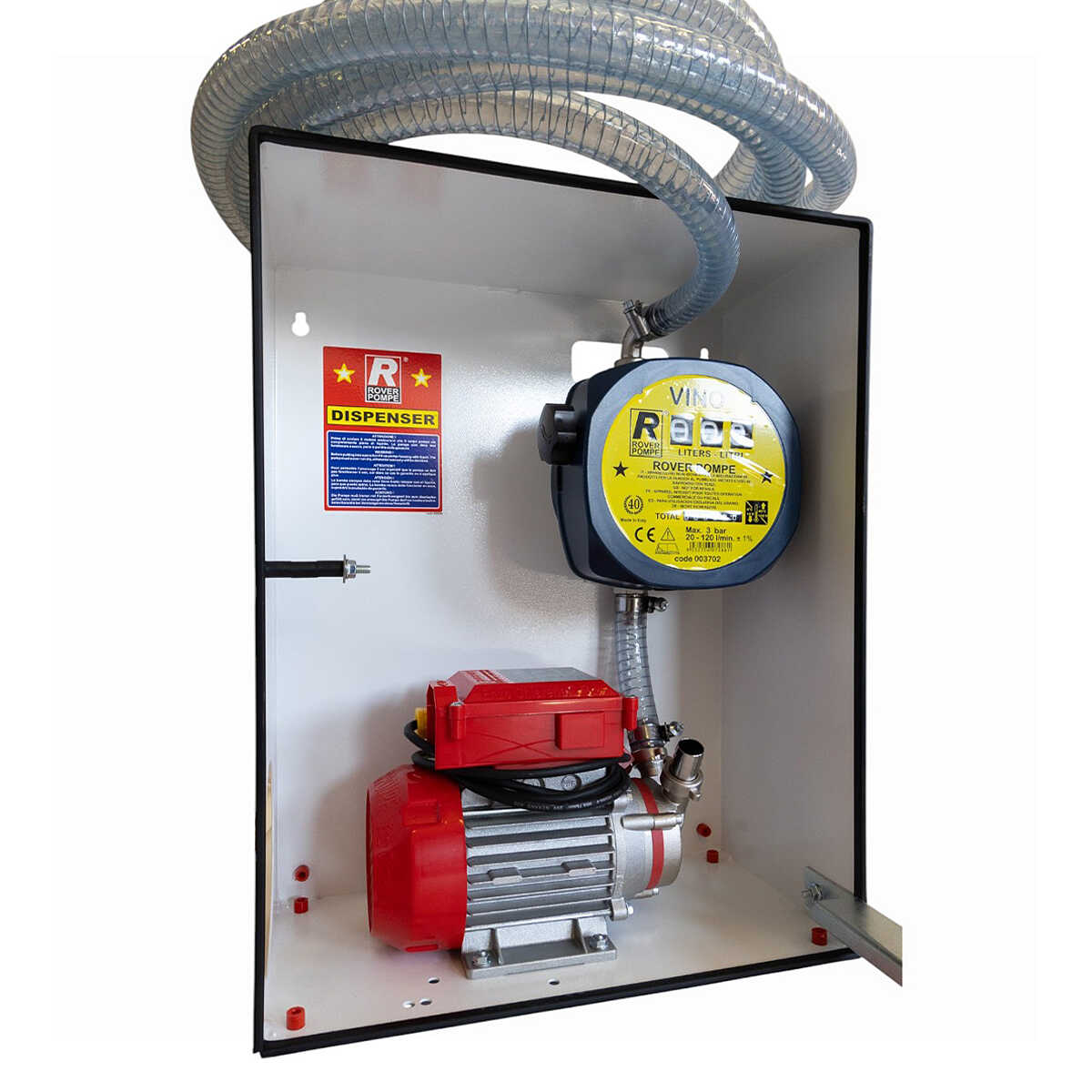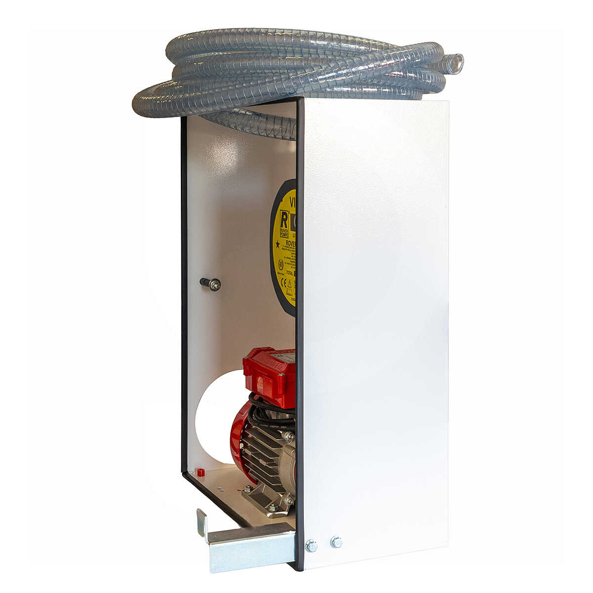 The DISPENSER dispensing units are supplied assembled, complete with 5 meters of hose with gun. Start-up and priming operations are the same as for electric pumps. The suction pipe must be connected to the free rubber port of the electric pump.