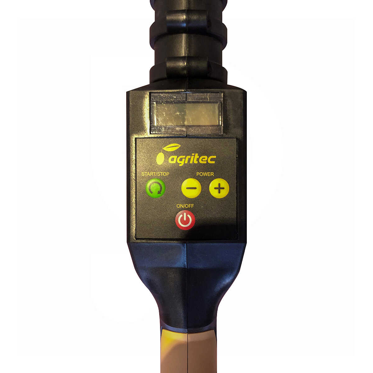 The Oliviero Flex PCT Cordless Premium electric shaker with telescopic pole is a tool designed by Agritec for harvesting all types of olives, pistachios and coffee. Thanks to the opposing horizontal movement of the AX01 Combs (6 combs of 3+3), the low weight of only 3 kg and the absence of cables, the Oliviero Flex PCT allows you to work safely and comfortably. The 97W motor with fixed speed is powered by a Li-Ion 21,6 V – 4,5 Ah battery (2x included) that guarantees up to 5 hours of autonomy. The telescopic pole reaches a length of 2350-3350 mm.