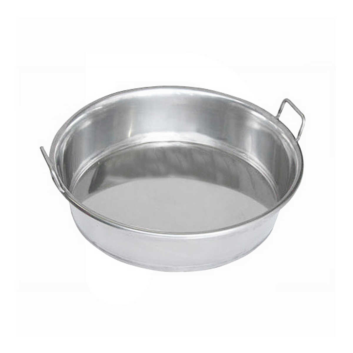 The Ø60 cm frying pan available at Polsinelli's store, made of AISI 304 stainless steel, is an essential tool for both professional chefs and home cooks preparing meals for large groups. With a top diameter of 60 cm and a base diameter of 54 cm, this pan ensures even heat distribution, delivering perfectly uniform cooking results. Its 16 cm height minimizes the risk of hot oil spills during frying, making it ideal for safely handling large quantities of food.