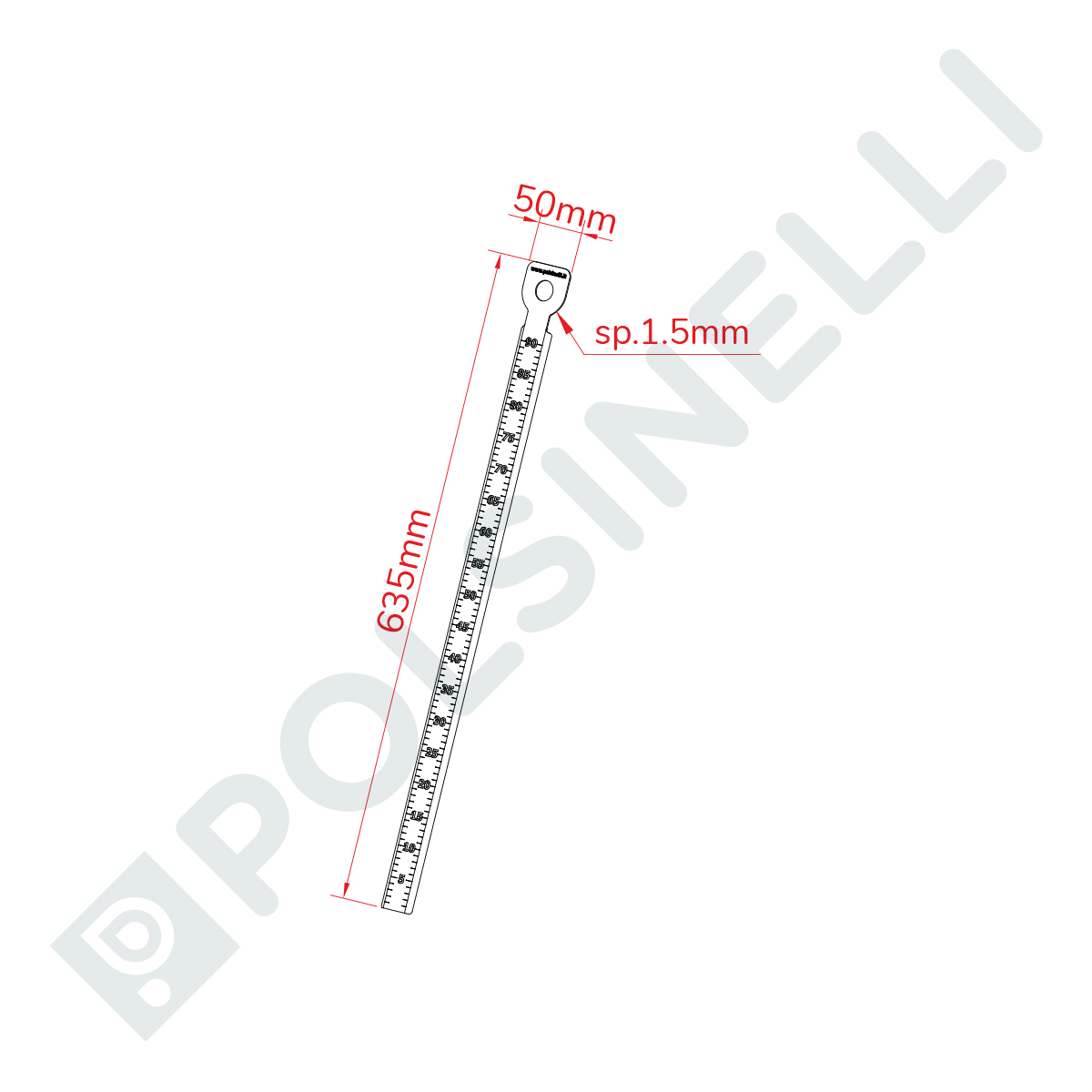 Stainless steel level indicator rod. Thanks to its gruaduate scale, it allows to measure the quantity of liquid.