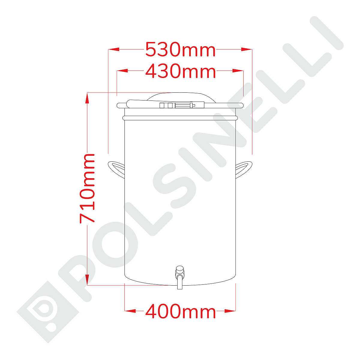 The 75-liter airtight stainless steel tank available at Polsinelli is the ideal solution for the safe and practical storage of food-grade liquids such as wine, oil, beer, kombucha, and many other products. Constructed from high-quality AISI 304 18/10 stainless steel to preserve the organoleptic properties of stored liquids, this tank also ensures exceptional corrosion resistance and long-lasting durability. The conical lid, equipped with a gasket and an airtight closure via an adjustable clamp, provides maximum protection against external agents while preserving the quality of the contents.