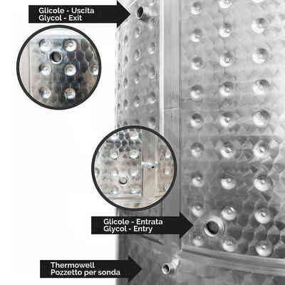 Refrigerated 300 L Stainless steel tank with conical bottom with air floating lid and Ø300 manhole