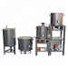 - 2° nivel (en el medio): olla de maceración motorizada equipada con filtro Halo para bagazos de cervecería;