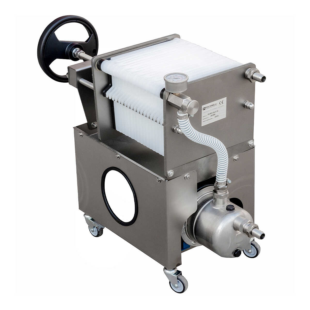 Il Filtro Jolly 20, in vendita nello store di Polsinelli, è un macchinario professionale destinato al filtraggio di liquidi alimentari tramite piastre e cartoni filtranti, progettato per soddisfare le esigenze di piccole e medie imprese che desiderano ottenere elevati standard di qualità durante la lavorazione dei loro prodotti.