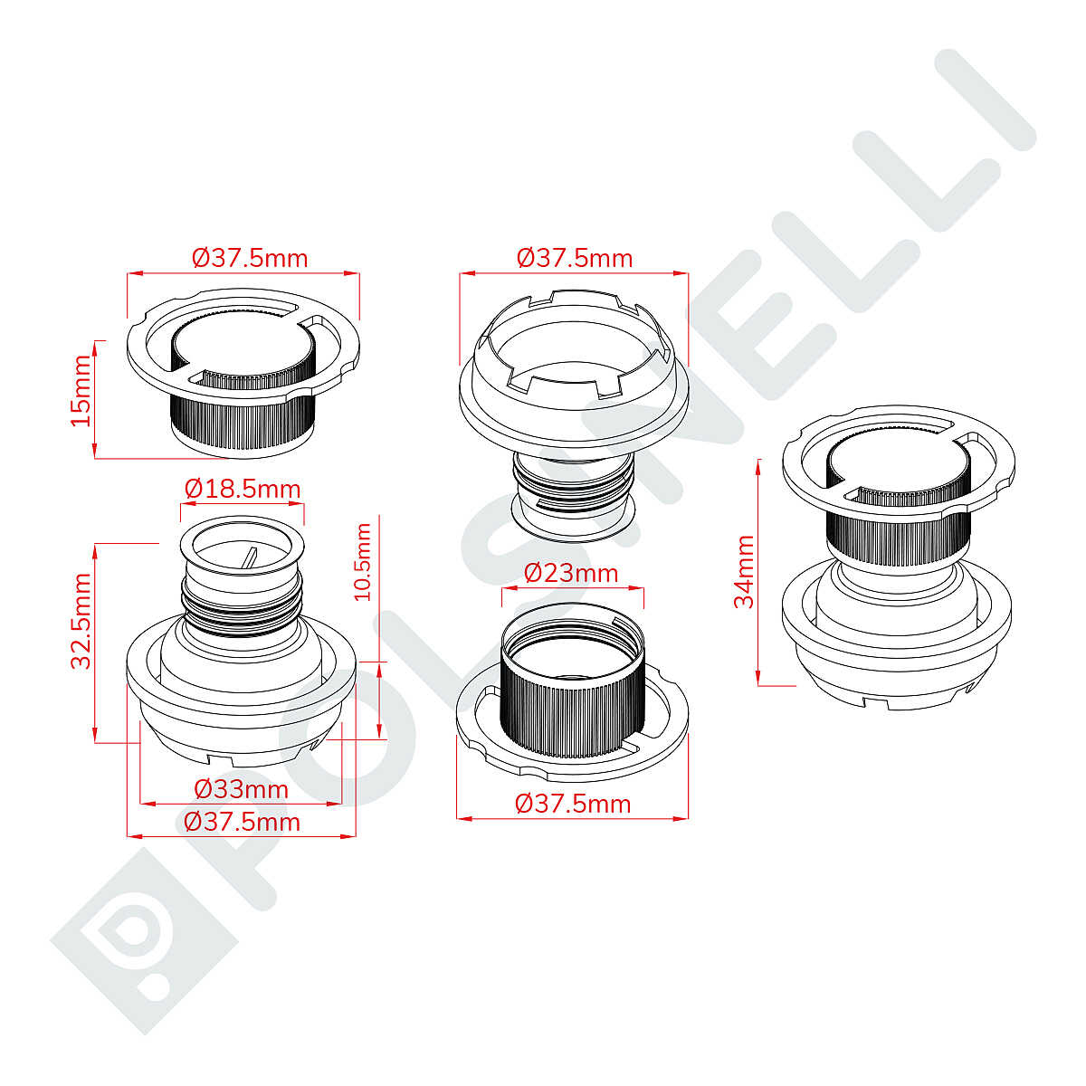 Bouchons verseur en plastique pour canettes d'huile 0,5/1/2/3 lt Ø32 (16 pcs)
