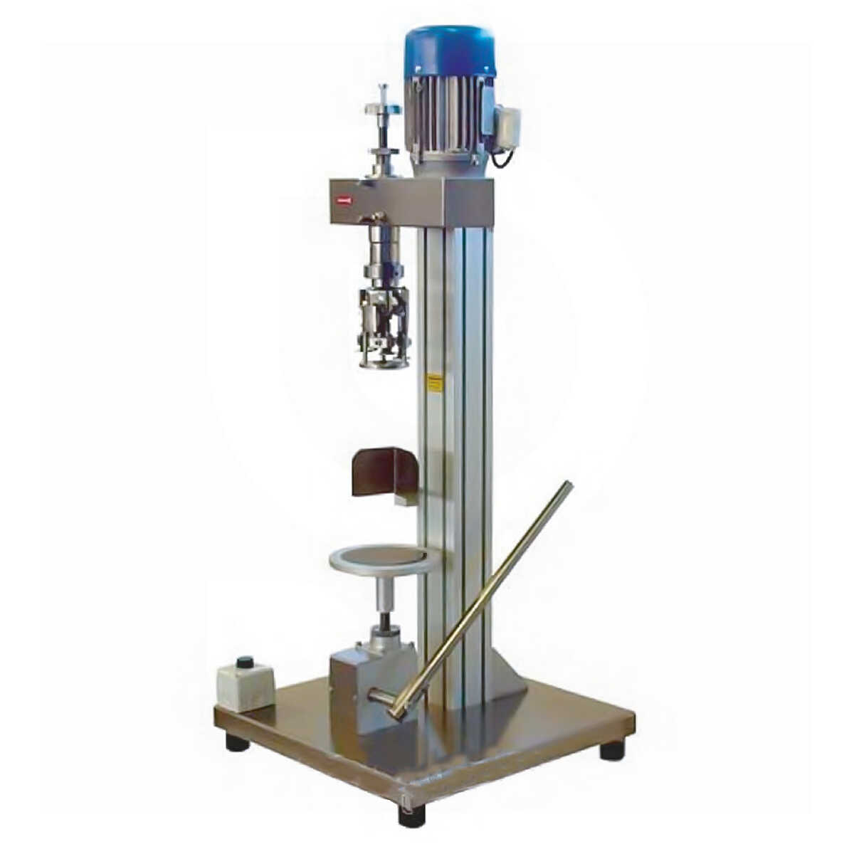 Équipée d’une tête rotative à 4 rouleaux, la machine est facile à utiliser: après avoir réglé la hauteur du plateau en fonction du format de la bouteille, l’opérateur doit simplement placer la bouteille sur le plateau avec le bouchon déjà inséré, appuyer sur le bouton de démarrage et actionner le levier manuel pour que la bouteille monte vers la tête rotative. En quelques secondes, le système filetera et scellera parfaitement la capsule.