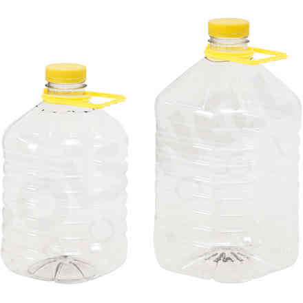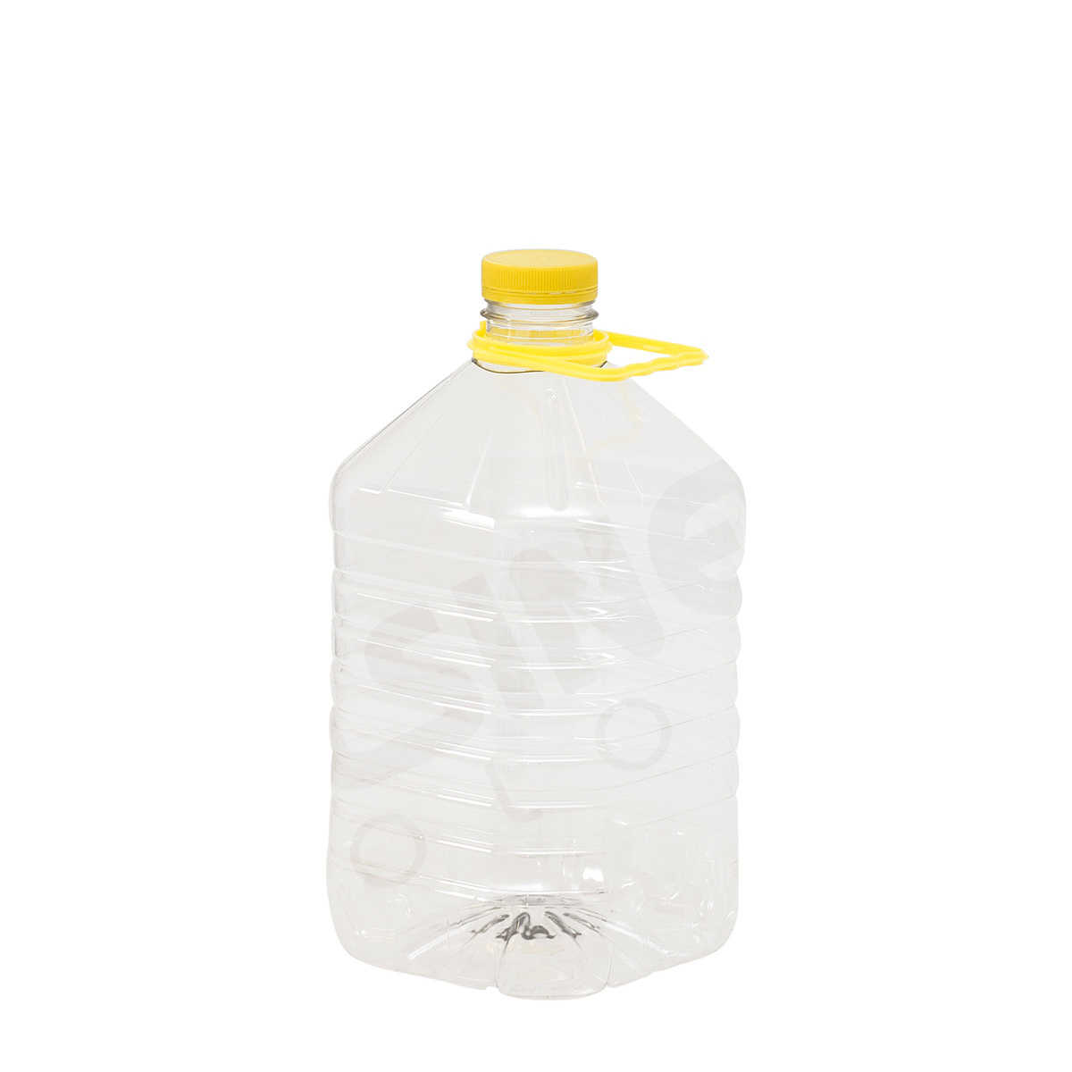 La bonbonne PET de 5 litres est également équipée d'une poignée pratique appliquée sur le col pour faciliter le transport, et du bouchon en plastique spécial.