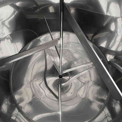 La cuve de brassage est motorisée et équipée d'un couvercle en inox haute épaisseur renforcé, ainsi que d'une trappe d'inspection à travers laquelle le malt est versé. Le groupe agitateur composé d'un moteur, d'un moto réducteur de tours et de pales, est directement fixé sur le couvercle.