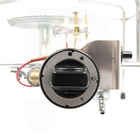 Brûleur à gaz en acier chromé avec vanne de sécurité, veilleuse et allumage piézoélectrique.