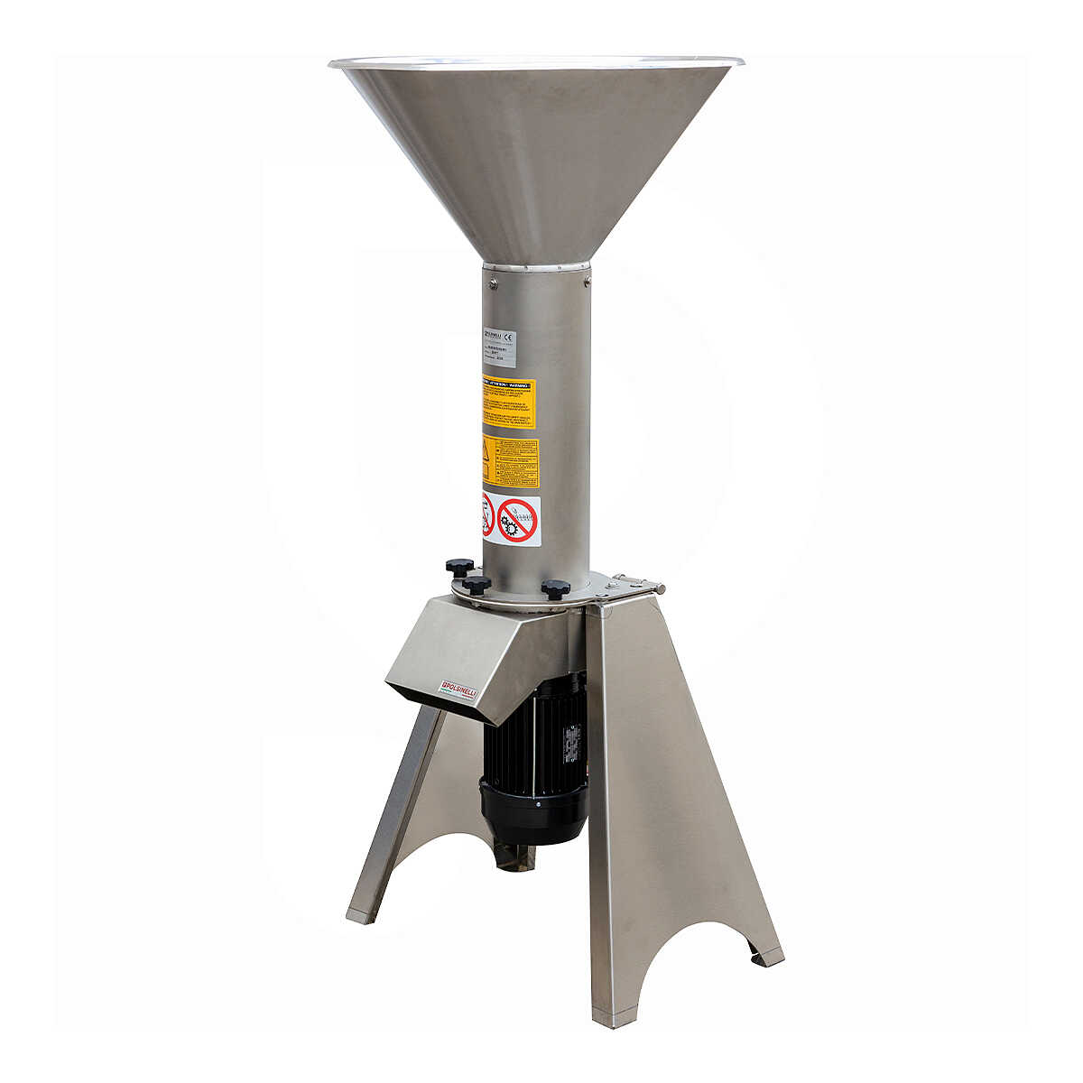 Il mulino con motore elettrico è un dispositivo progettato per spezzettare tutti i tipi di frutta senza noccioli, come mele e pere, e diverse verdure, quali ad esempio patate e carote. Si tratta di una macchina interamente realizzata in acciaio inox AISI 304, adatta a piccoli produttori e alle grandi aziende che operano nel settore alimentare. Il mulino per frutta funziona con un motore monofase con un voltaggio di 220V e ha una portata di 1000-1200 kg all’ora, che lo rendono la scelta ideale per un uso professionale ad alta produttività.