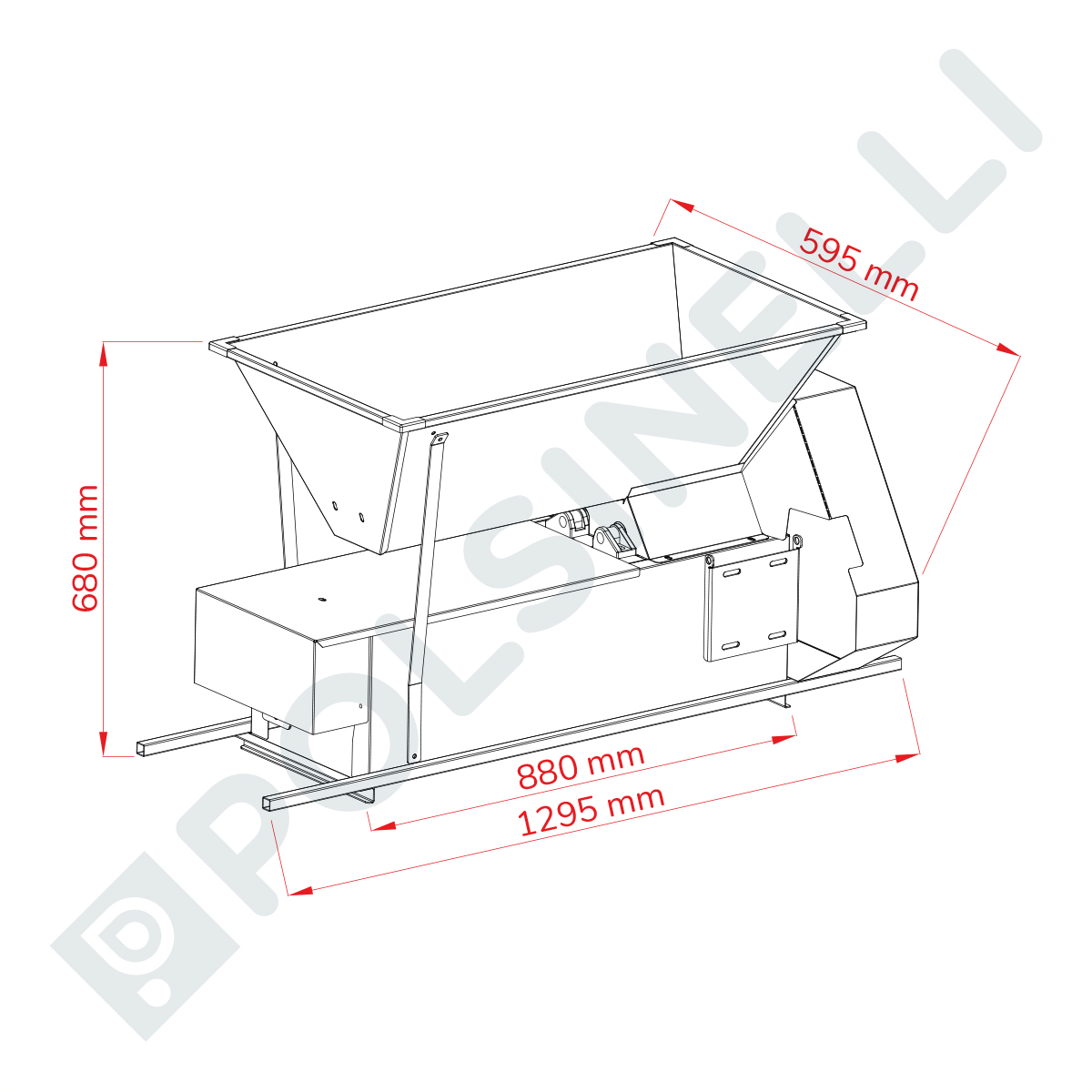 - Dimensione complessiva: mm 1295 x 595 x 680