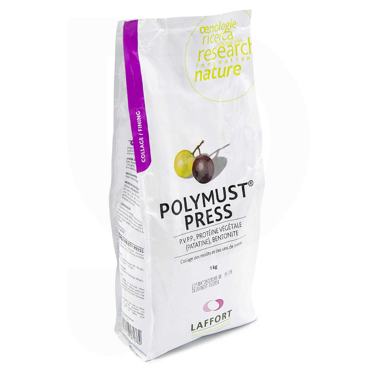 - POLYMUST® PRESS non provoca surcollaggio, nemmeno alle dosi più elevate. In caso di vini rossi torchiati il trattamento di chiarifica è rapido (15 giorni) con un fondo di fecce molto compatto e ridotto.