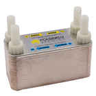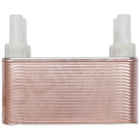 Lo scambiatore di calore a 40 piastre saldobrasate è stato ideato per fornire ai clienti un prodotto professionale di grande qualità. Lo scambiatore è costituito da un pacco piastre, saldate insieme per brasatura a rame in forni sottovuoto. Le piastre sono corrugate e non presentano guarnizioni. L’assenza totale di guarnizioni consente l’utilizzo dello scambiatore di calore a 40 piastre saldobrasate a temperature e pressioni estremamente elevate. La pressione di esercizio massima è di ben 10 bar, la temperatura di esercizio minima di -10°C e la massima di +90°C. Le piastre, realizzate in acciaio inox, assicurano grande longevità al prodotto. La dimensioni dello scambiatore a 40 piastre sono ridotte grazie all’integrazione dell’incastellatura di contenimento sul pacco piastre ed il peso è di soli 2,8 kg. Il prodotto presenta attacchi filettati di diametro 3/4” per favorire una vasta compatibilità. La configurazione a flusso parallelo permette al cliente di scegliere le posizioni di ingresso e di uscita, purché venga mantenuta la controcorrente, essenziale per il corretto funzionamento dello strumento.