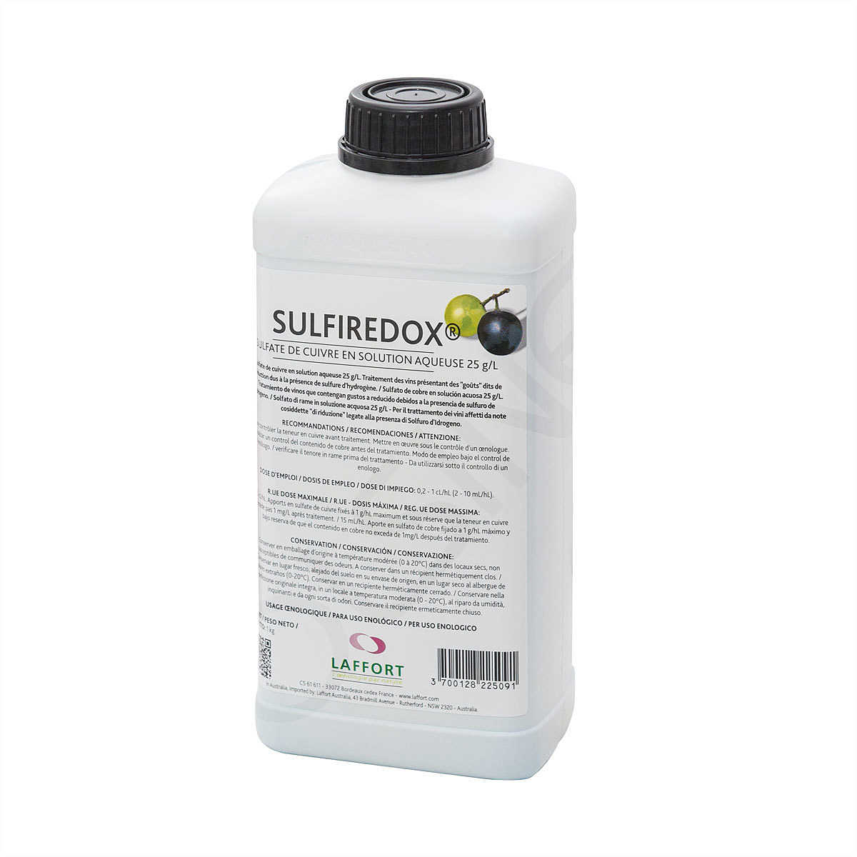 Proposto in tanica da 1 kg Sulfiredox presenta un colore azzurro e un aspetto liquido e limpido. La dose consigliata di solfato di rame va dai 2 mL/hL fino ai 10 mL/hL. La data di scadenza per l’utilizzo finale è di 4 anni. Si raccomanda di conservare la tanica di Sulfiredox per vino nella confezione originale, in un locale asciutto dalla temperatura compresa tra i 0 e i 20°C.