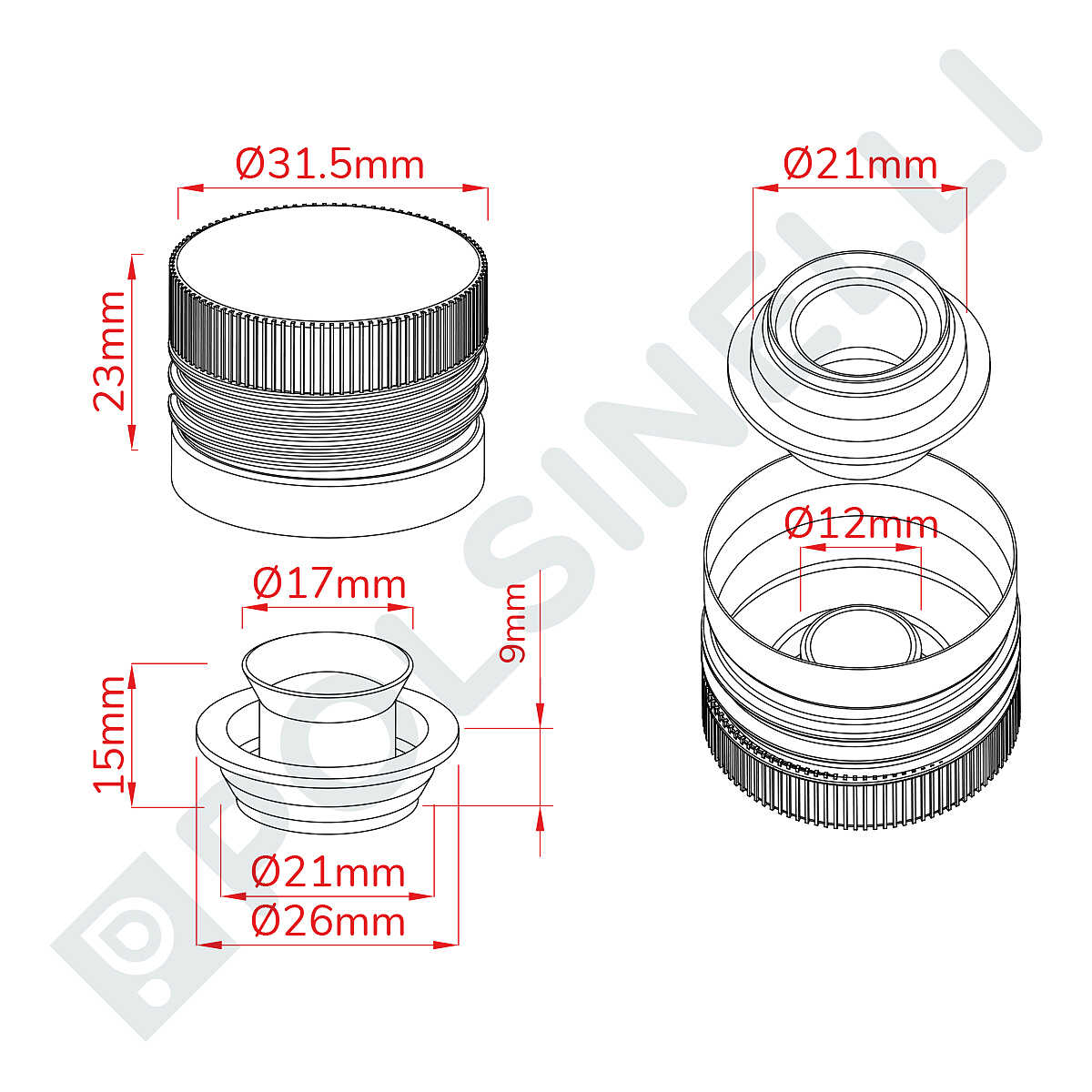 - Diametro: 31,5 mm